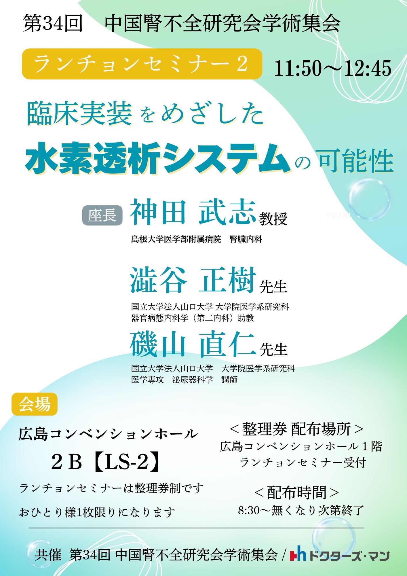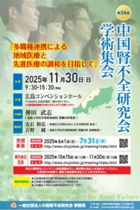 第34回中国腎不全研究会学術集会が広島コンベンションホールで開催されます。